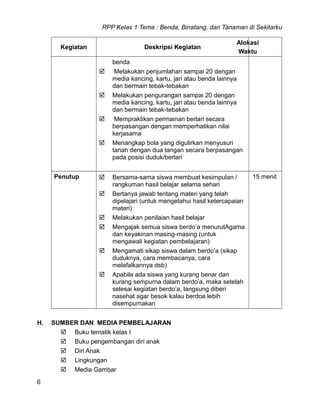 7 Rpp Sd Kelas 1 Semester 2 Benda Binatang Dan Tanaman
